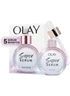 The Olay Super Serum 5 in 1 Benefit Face Serum is a 1 fl oz fluid formulated with glycerin and aloe vera, ideal for all skin types. This product is designed to target clogged pores and acne, providing benefits for both men and women. With a period after opening of 12 months, this serum from the Pixi brand is alcohol-free, animal cruelty-free, and paraben-free. Perfect for daily skincare routines, this product is a must-have for achieving a clear and glowing complexion.