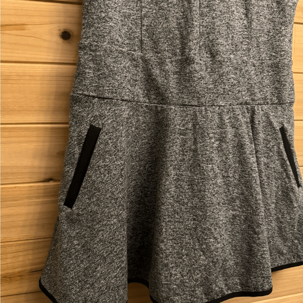 Space Dye Black & Gray Golf Athletic Mini Dress With Shorts Under Skirt & Pockets Materials: Body/Shorts: 89% Polyester 11% Elastane Pockets/Trim: 87.7% Polyester 12.3% Spandex Measurements In Inches: Pit To Pit: 17 Length: 32 Inseam: 4