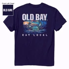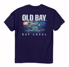 This beautiful Old Bay t-shirt displays a Maryland crab swimming free. (I assume before being caught, cooked and then eaten at your favorite restaurant.) This Old Bay Crab Eat Local Short Sleeve T-Shirt is constructed of preshrunk 100% cotton, this shirt is durable and comfy day through night. 5.3 oz fabric 100% Cotton Preshrunk to Minimize Shrinkage Taped Neck and Shoulders Printed on both back and front Old Bay logo over front left chest Double-Needle Sleeves, Collar, and Bottom Hems High-Quality Screen-Printed Artwork that will Withstand Hundreds of Washes Licensed Old Bay product ©2024 OLD BAY® used under license