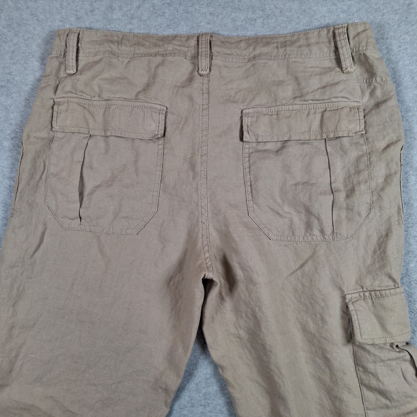 Old Navy Linen Cargo Pants Men 40X32 Beige Drawstring Flap Pockets waist 40" rise 13" inseam 31"