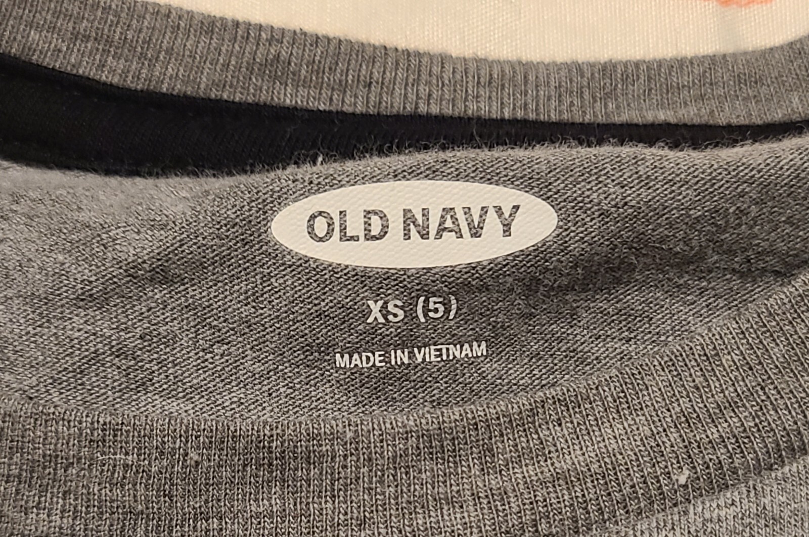 Upgrade your little one's wardrobe with this stylish Old Navy boys' t-shirt. Made from a comfortable blend of polyester and cotton, this pullover features a round neckline and long sleeves. The solid gray color and band collar style add a touch of sophistication to any outfit, making it perfect for activewear, school, or walking. This lightweight and easy-care t-shirt is machine washable and features a dark fabric wash. It's a perfect choice for the winter, fall, or spring seasons. Whether you're looking for a casual outfit for your little boy or something more stylish, this Old Navy t-shirt is a great addition to any wardrobe. See photos for measurements approximate. 60% cotton and 40% polyester. Very good pre-owned condition.