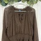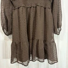 pre-loved, overall Great condition Measurements are approx Bust: 43 inches (21.5 inches across front) Waist: 32 inches (16 inches across front) un-stretched Length: 34 inches This beautiful Old Navy brown chiffon mini dress blends timeless style with modern bohemian charm. Designed with sheer long sleeves, textured Swiss dot detailing, and a smocked elastic waistband, it's flattering, feminine, and easy to wear. The lightweight lined fabric gives it movement and flow, making it perfect for both casual and dressy occasions. Whether you pair it with boots for fall or strappy sandals for spring, this versatile dress adds effortless elegance to any look. boho mini dress, chiffon dress, Swiss dot dress, brown dress, fall fashion, long sleeve mini dress, Old Navy dress, smocked waist dress, flowy dress, romantic style, holiday outfit dress DR244