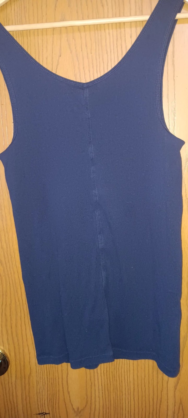 This Old Navy tank top is a stylish and versatile addition to any woman's wardrobe. The navy blue color and fitted design make it perfect for casual occasions, while the cotton material ensures comfort and easy care through machine washing. With a sleeveless design and size large, this top is a fashionable choice for the modern woman looking for a classic and timeless piece.