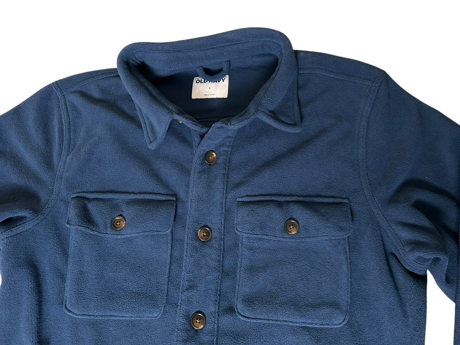 Old Navy Fleece Shirt Jacket Women Sz Large Blue Long Sleeve Button Down Pockets Fair to good used condition. Light Fading throughout. Please Study pictures carefully before purchasing Please review the pictures Very carefully, before purchasing, for condition, details, and measurements. We do our best to describe accurately all of our items. The Approx. Measurements Laying Flat (not doubled) : 28.5" Top to Bottom Length 18" Shoulder to shoulder 23" Armpit to Armpit 25" Sleeve Length 24" Width at hem Feel free to ask any questions. Thank you for visiting our store! BagCO56