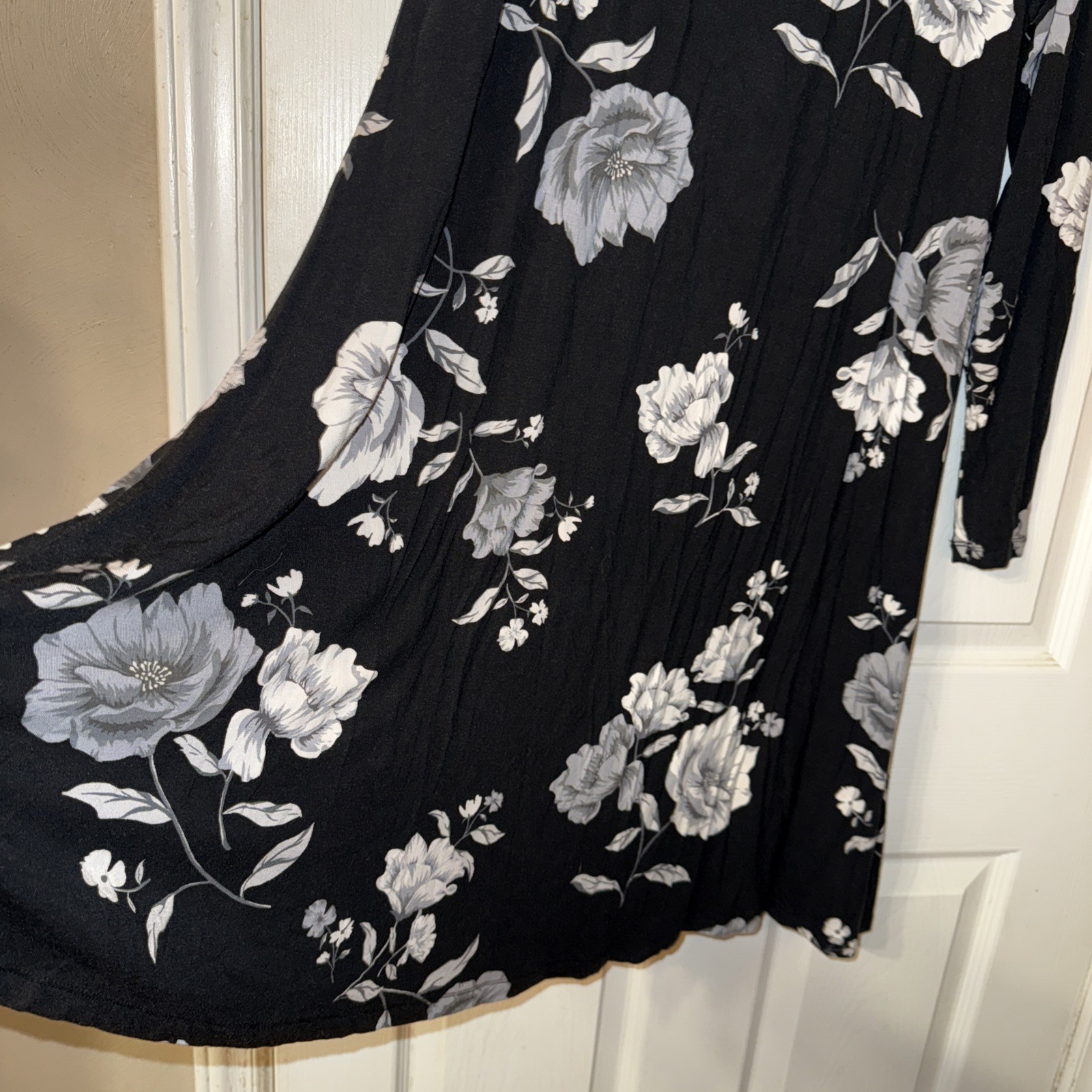 The Old Navy Long Sleeve Floral Knit Swing Dress in women's size Large is a versatile and stylish piece perfect for all seasons. Made from a blend of spandex and rayon, the dress features a flattering trapeze and swing silhouette with a round neckline and pullover closure.