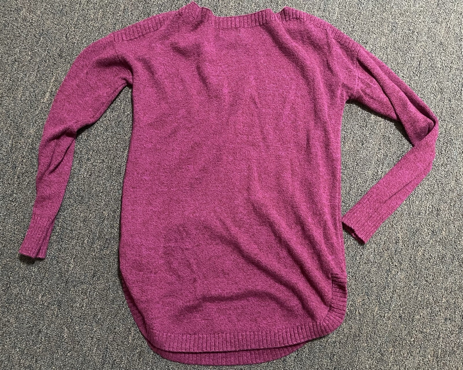 This Old Navy Purple Long Sleeve Tunic Sweater in Women's Size Small is a stylish and versatile addition to any wardrobe. Made from a comfortable cotton blend material with a knit fabric type, this pullover sweater features a solid purple color that is perfect for casual occasions in the winter, fall, or spring seasons. With its regular fit and long sleeves, this sweater is easy to care for with machine washable instructions, making it a practical and fashionable choice for everyday wear. Perfect for layering or wearing on its own, this sweater is a must-have for any woman looking for a cozy yet chic top.