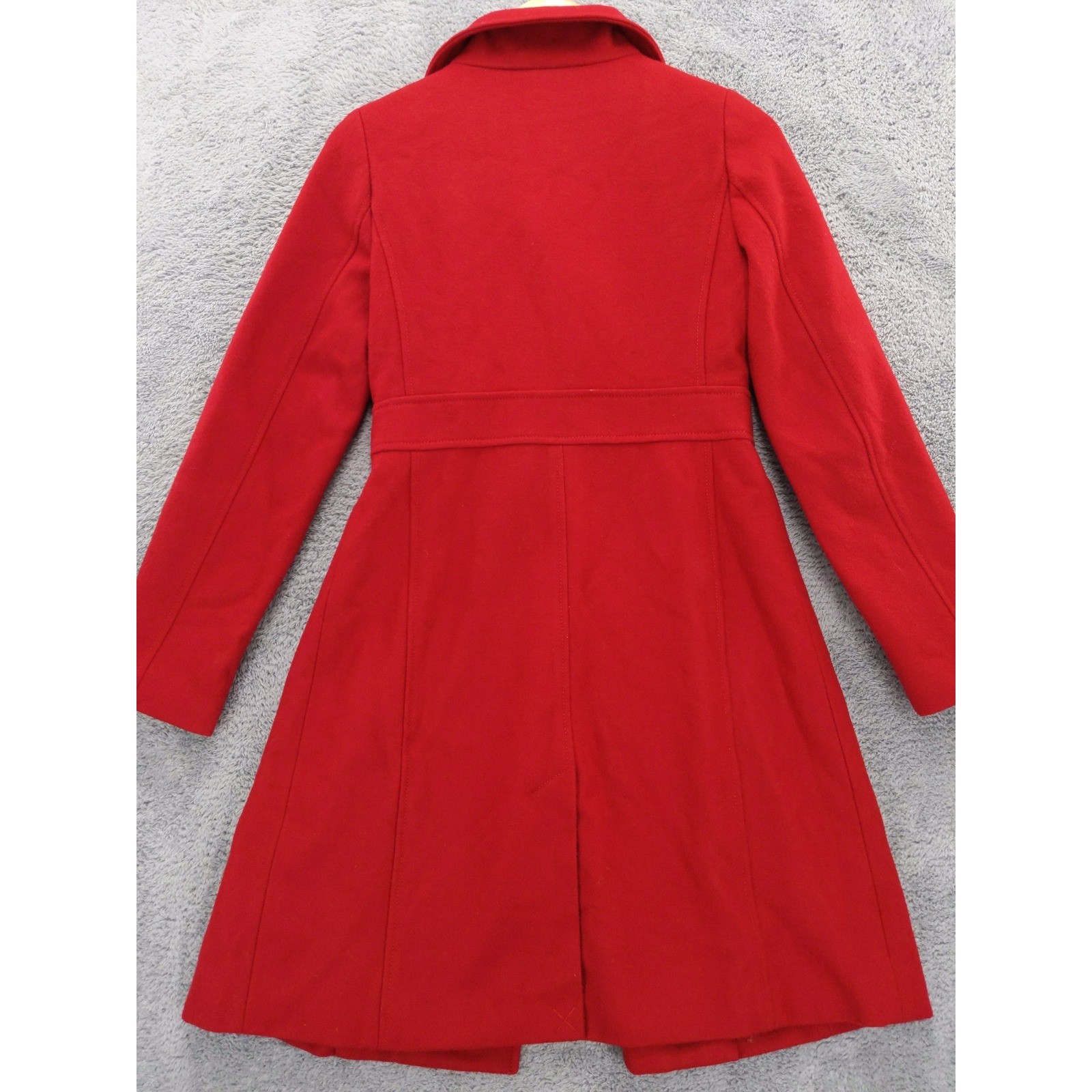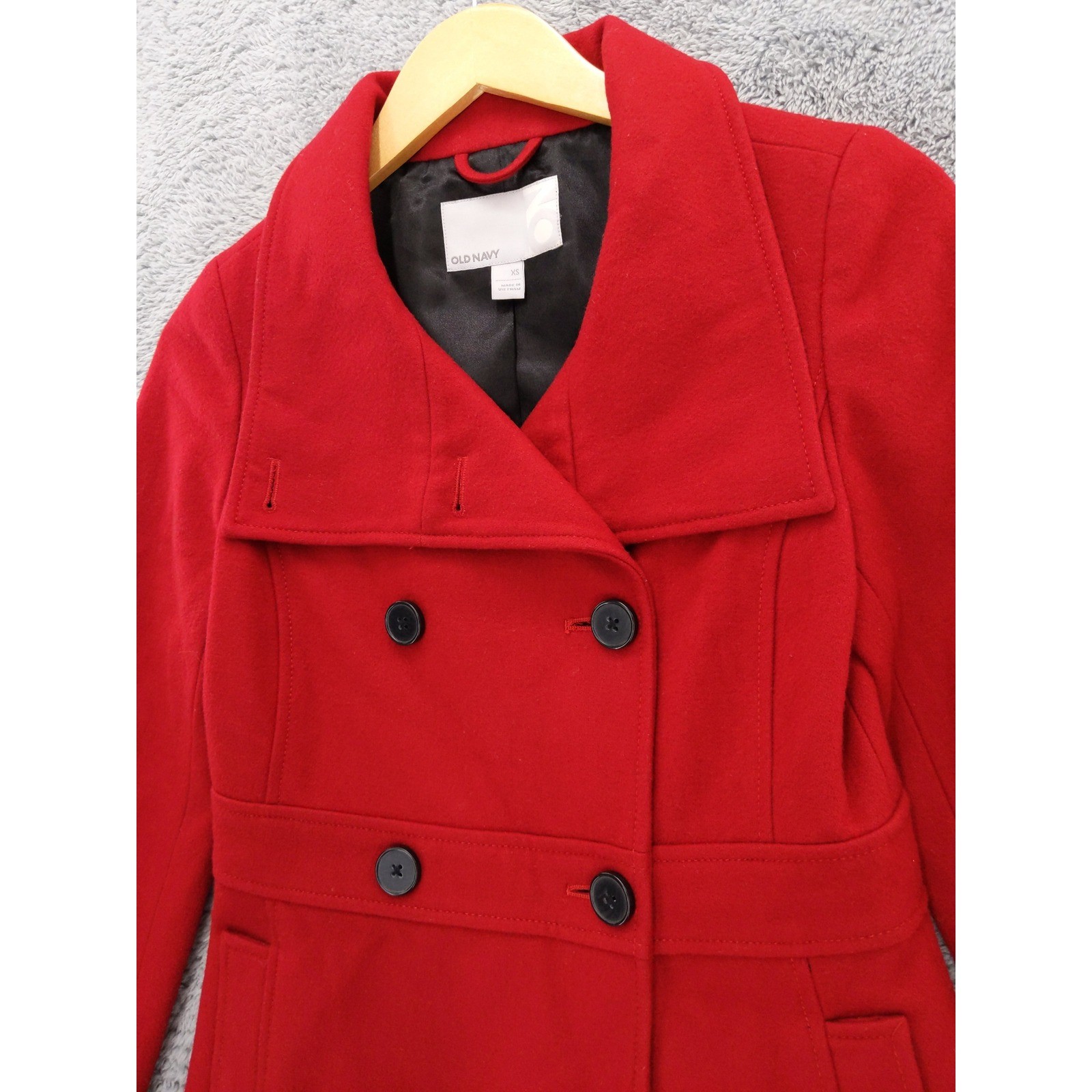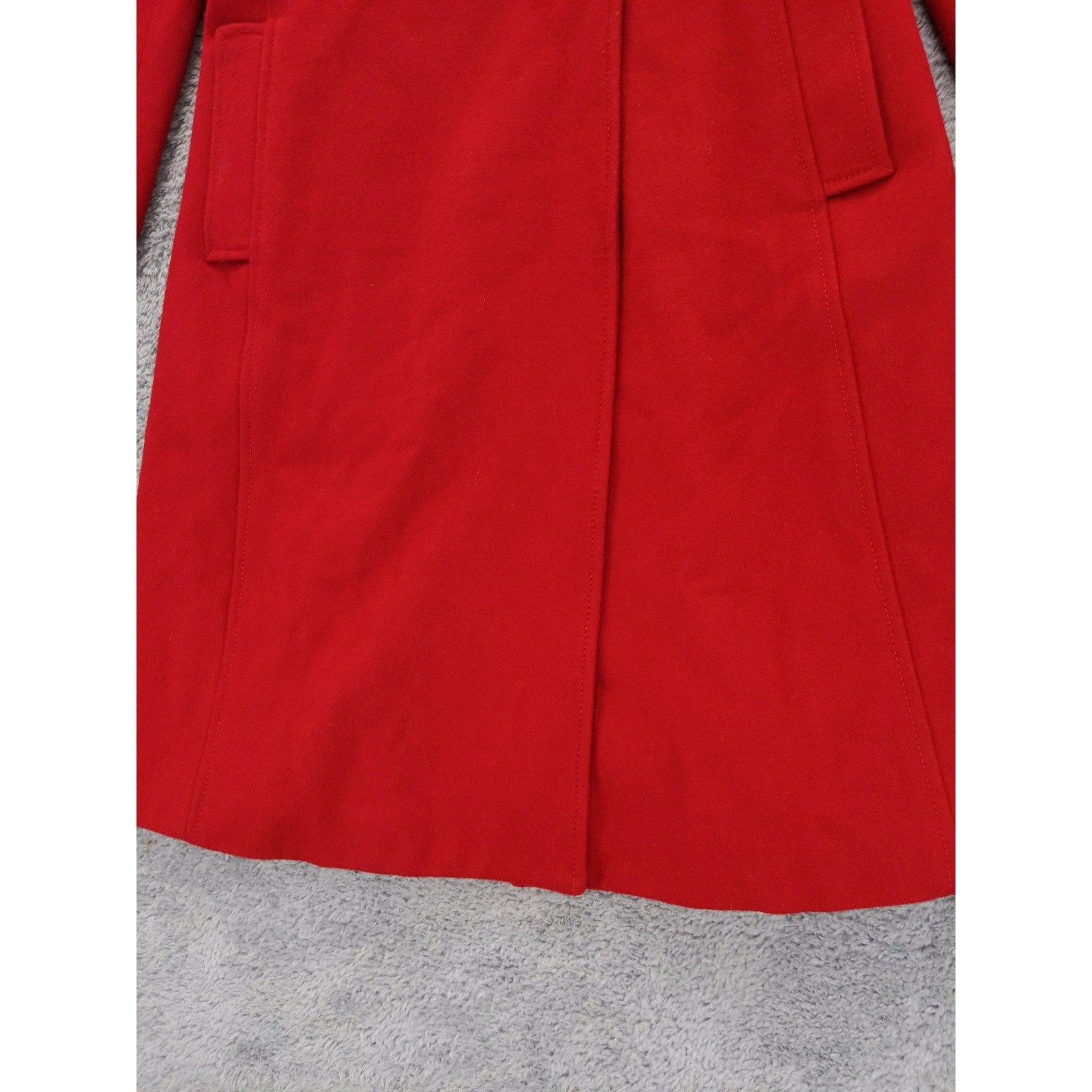 Stylish red overcoat featuring a classic silhouette. This fully-lined coat boasts a double-breasted front with black button closures, and a wide notched collar. Measurements: • Chest Across - 16" • Waist Across - 14" • Hem Across - 21" • Neck to Hem (Back) - 35" • Shoulder to Shoulder - 14" Excellent used condition with no holes, tears, heavy wear, or stains.