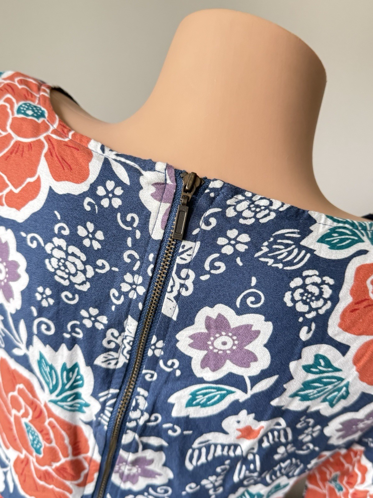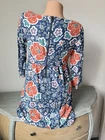 Old Navy Shift Dress S Floral Bird 3/4 Sleeve Blue Coral Spring Whimsical Small
