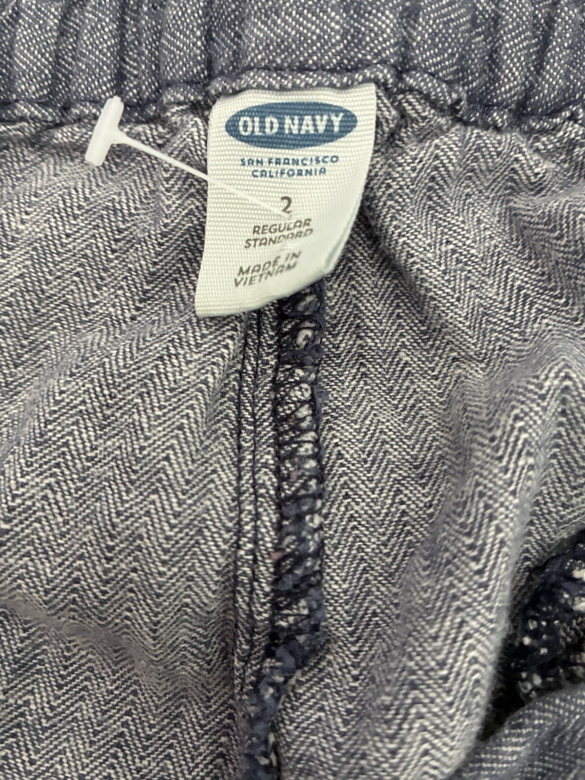 The product is a pair of Old Navy women's jeans in size 2. They are a regular fit and feature a cropped style, making them perfect for a trendy and on-trend look. The color is blue, providing a classic and versatile option for any woman's wardrobe. These jeans are designed to be comfortable and flattering, making them a great addition to any casual outfit.