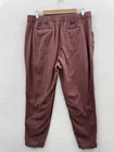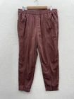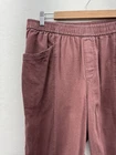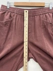 These Old Navy Women's Linen Blend Pants in size Large feature a relaxed fit with a solid red color and an ankle-length tapered leg style. The pants have a pull-on style with an elastic waist and drawstring closure for comfort, making them suitable for travel, casual outings, workwear, or business settings. Made of a blend of rayon and linen, they offer a high-rise fit and are machine washable. With pockets for convenience, these pants embody a hipster, beachy, or bohemian vibe, perfect for the summer, fall, or spring seasons.