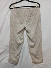 Elevate your wardrobe with these stylish Old Navy women's pants. Made from a comfortable and breathable blend of rayon, viscose, and linen, these pants feature an elastic waistband and cuffed legs for a flattering fit. The beige color and solid pattern make them perfect for any occasion, whether it's for travel, workwear, or casual outings. The pants also come with pockets, adding both functionality and style to your outfit. These cropped pants have a mid-rise fit and a tapered leg style, giving them a chic and modern look. They are perfect for the summer, fall, and spring seasons and are machine washable for easy care. The pants are part of the Old Navy A Stones Throw collection and are available in size M. Get your hands on these versatile and comfortable pants today!