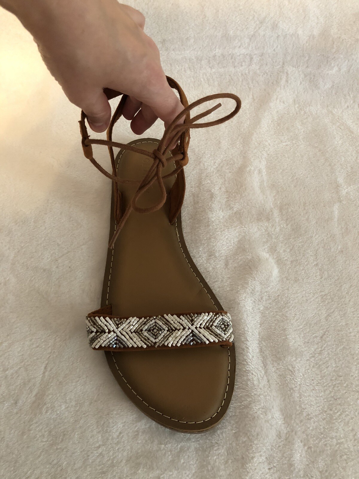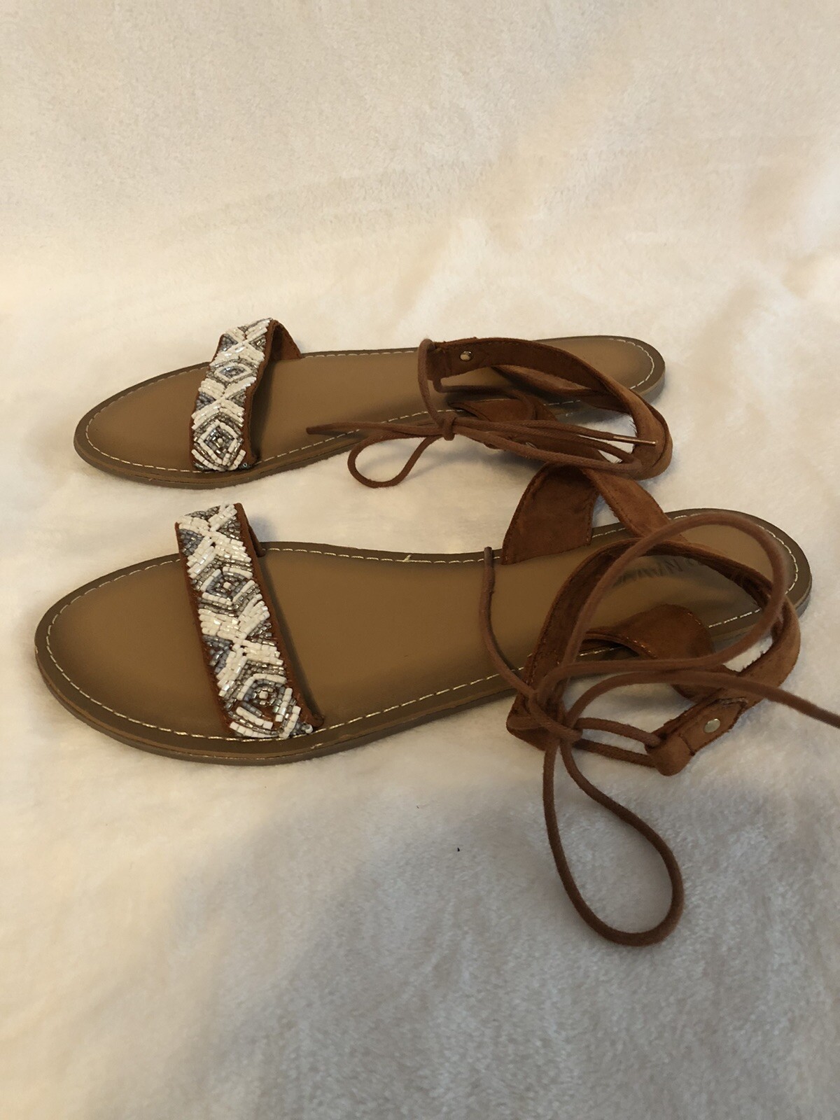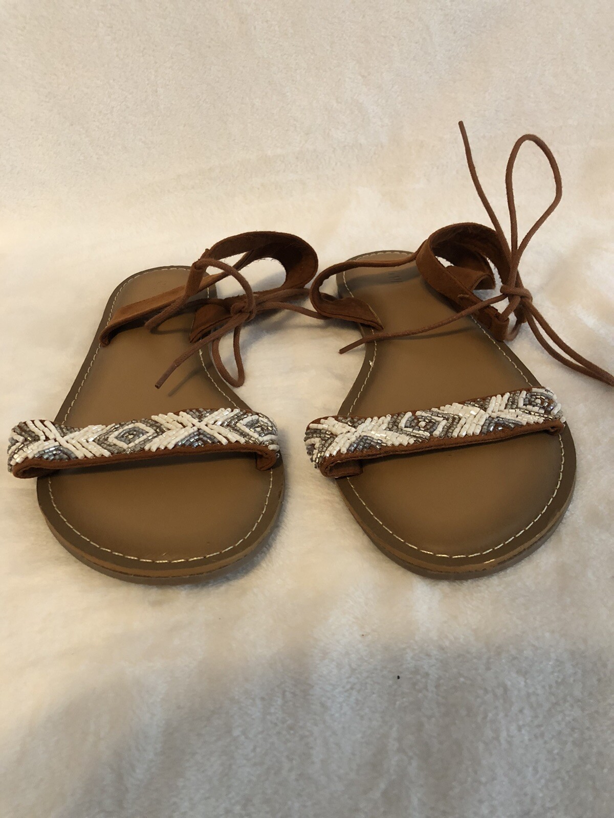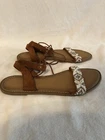 Old Navy Womens Sandals 8 Brown Gladiator Roman Boho Beaded Cottagecore Aztec In great pre-owned condition.