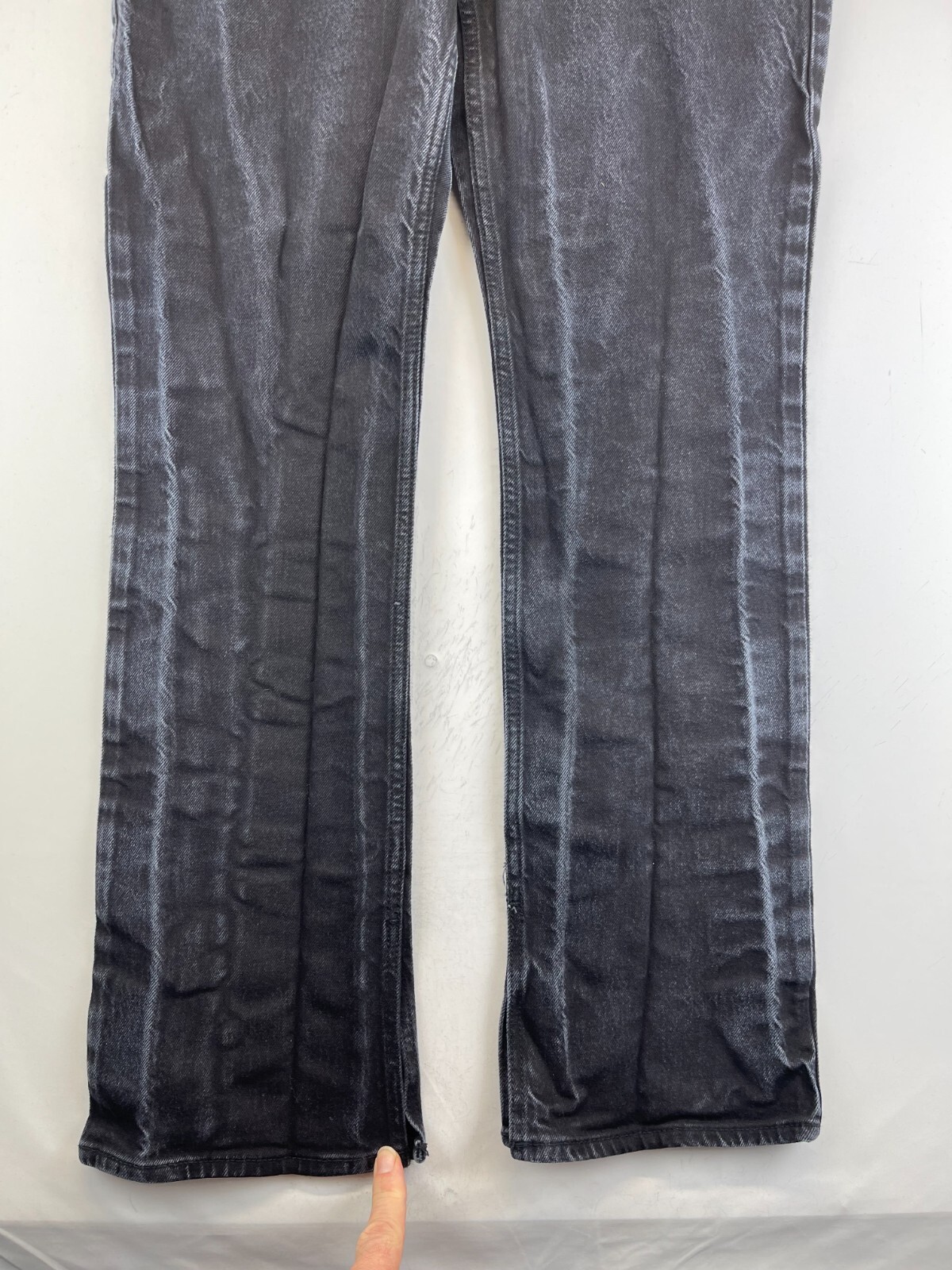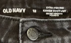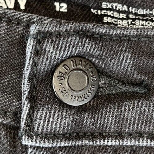 These are Old Navy women's jeans in size 12, featuring a black denim fabric with a button fly closure. The jeans are a Kicker Boot Cut style with a high rise and a 30-inch inseam. They have a 5-pocket design with a Secret Slim pocket, and are made of a blend of spandex and cotton with stretch for comfort. The dark wash jeans have a distressed look and are suitable for various seasons and themes. Good preowned condition. These jeans look like they were folded for a VERY long time resulting in light creses showing all over the legs. I have to assume that this was not intentional. These jeans now have a unique look as pictured. Please see all photos; specifically for measurements. For clothing specifically, see photos for all measurements and/or any issues if applicable. Pay close attention to the measurements as the size of the garment may quite possibly be different than the actual measurement(s) due to washing, shrinkage, or stretching as these are used clothes. The size in the title is the size on the tag of the garment. See photos for measurements of actual measurements as they may differ. ALWAYS CHECK THE MEASUREMENTS IN THE PHOTOS. This will remove any questions on measurements as well as always cover the possibility of human error in the listing(s) in the case of a typo or oversight. All clothing and shoes have been washed/cleaned, and are cleaned and stored in a smoke free environment. However, please keep in mind that these are preowned items and there is always a possibility of there being preowned dirt, dust, or stray hairs present. I do my best to clean these items with hair collecting products in the dryer after being washed, and by hand with shoes. If shoe trees appear in the photos, they are for photography purposes only to illustrate how the shoes look filled out, and are not included. I am available for questions. I accept or negotiate reasonable offers. Have an amazing day. Thank you.