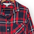Classic plaid shirt, a timeless addition to any wardrobe. This long-sleeved button-down features a traditional plaid pattern in red, blue, and white, offering a versatile look that can be dressed up or down. The shirt includes a chest pocket and a comfortable, relaxed fit, making it ideal for everyday wear. Perfect for casual outings, weekend getaways, or cozy evenings by the fireplace. Measurements: • Pit to Pit: 26 in • Sleeve Length: 24.5 in • Length: 28 in Color: Red Type: Button-Up Department: Women Material: Cotton Neckline: Collared Sleeve Length: Long Sleeve Sleeve Type: Classic/Fitted Sleeve Accents: Button Pattern: Plaid Features: Chest Pocket, Long Sleeves, Button Down, Collared, Relaxed Fit Fit: Relaxed Keywords: Old Navy, Womens Shirt, Plaid Shirt, Button Down, Long Sleeve, Red Plaid, Blue Plaid, XXL, The Classic Shirt, Casual Shirt, Comfortable Fit, Weekend Wear, Everyday Shirt