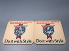 4 piece set of Old Style Lager Beer Collectibles. 2 NOS shell tumblers and 2 NOS coaster bar mats. Condition is "used" All glasses are inspected very closely and graded according to the scale at the bottom of this description page, please take the time to read and understand the scale. Any chips, cracks, or notable damage will be mentioned in the primary description below. Please contact me with any questions. 5oz, 3 9/16" tall NOS shell taster glasses and 2 NOS coasters from the same era. Please look closely at all photos for an accurate understanding of condition. The glasses came out of a box dated 1979 and the coasters have 1985 printed along the edge. This is the logo G Heileman was using when they were at their biggest, the 4th largest brewer in the US, not long before the company started to decline and was eventually sold to Stroh Brewing. These old beer advertising items are perfect for display or every day use. Grab this set today and enjoy your next man cave happy hour in style! I list vintage beer glasses every week. Please have a look through my other listings and check back in regularly! GRADING SCALE: PRISTINE = no identifiable wear marks of any sort, the glass is like new. NEAR-PERFECT = less than 5 minimal, very light wear marks identifiable only using a light source and looking very closely. EXCELLENT = up to 15 light wear marks around the glass, such as rub marks and micro-scratches, but no true scratches. Possibility of very minor chip/scratch in the label if there are no other wear marks on the glass. VERY GOOD = similar number of wear marks as excellent rating, just a little more noticeable. Possibility of a light scratch ring on the bottom surface. Possibility of a minor chip or scratch in the label, nothing obvious. GOOD = many light wear marks with the possibility of 1-2 minor scratches somewhere on the glass. Noticeable scratch ring on the bottom surface likely. Possibility of minor label damage. WELL USED = lots of wear and/or multiple obvious scratches. Heavy scratch ring on the bottom surface likely. Significantly faded or damaged label possible. DAMAGED = cracked, chipped, or very heavily worn glass. Thanks for looking and happy shopping!