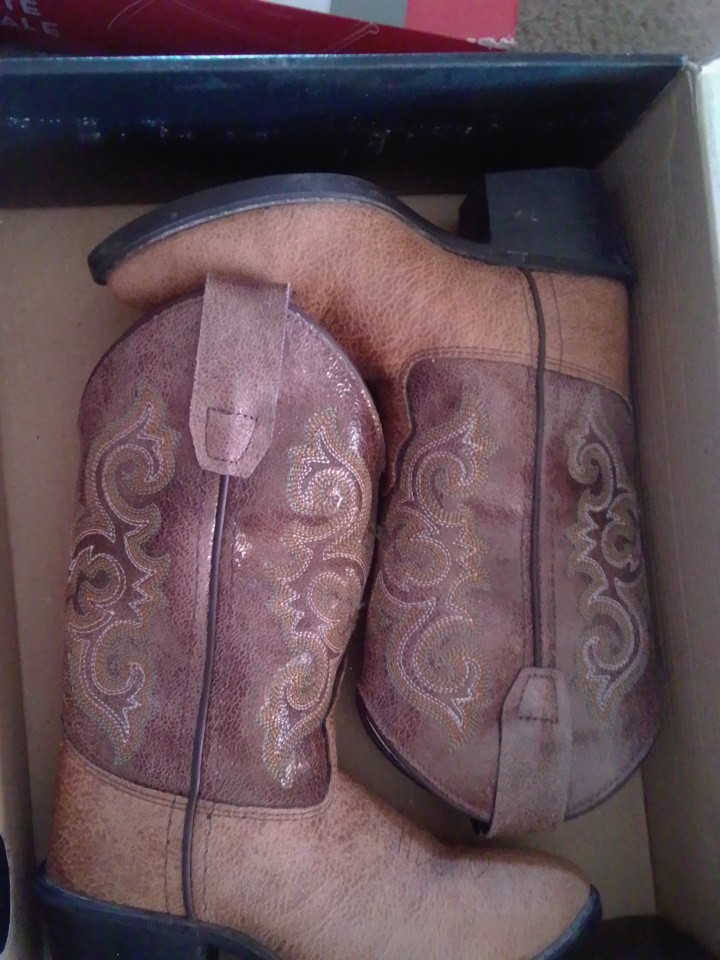 Shoe Shaft Style: Mid-Calf Occasion: Casual Vintage: No US Shoe Size: 9 Shoe Width: D Upper Material: Leather Closure: Pull On Color: Brown Cushioning Level: Moderate Character: Boots Type: Boot Handmade: No Brand: Old West Department: Boys Season: Fall, Spring, Winter Theme: Cowboy Cleat Type: Rubber Style: Western