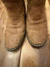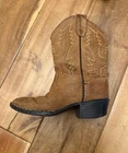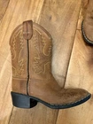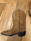 The Old West Toddler Size approximately 8-9 Leather Cowboy Boots in Brown are a stylish and classic footwear option for young children. Made with leather uppers, these mid-calf boots feature a Western cowboy style, perfect for play time, a rodeo, or a day on the farm. The moderate cushioning level ensures comfort for all-day wear, making them a practical and fashionable choice for little ones who love the rugged look of the Wild West.
