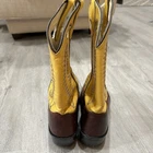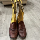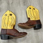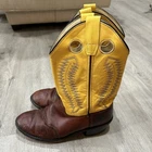 Old West Yellow Brown Leather Western Rancher Cowboy Boots Men’s Size 5.5