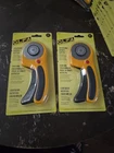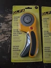 Items photographed will be the exact item shipped to buyer. Currently have 2 and I am offering a bulk discount The Olfa 60mm Ergonomic Rotary Cutter RTY-3/DX is a high-quality quilting tool manufactured by OLFA. This rotary cutter is designed with an ergonomic handle for comfortable use during long quilting or sewing sessions. The 60mm blade size is ideal for cutting through multiple layers of fabric with precision and ease. This tool is perfect for quilters and sewers looking for a reliable and efficient rotary cutter to add to their crafting supplies.