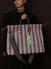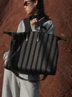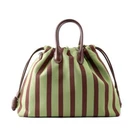 Step into the world of elegance and functionality with our Olive & Espresso Striped Canvas Oxford Large Tote. Designed for the woman on the go, this bag combines style with practicality, making it the perfect companion for shopping, work, or weekend outings. ► Key Features: Durable Oxford Canvas: Crafted with high-quality Oxford cloth, our tote stands up to the rigours of daily use while maintaining its chic appearance. Stylish Striped Design: The eye-catching olive and espresso stripes offer a unique, sophisticated look that complements any outfit. Leather Accents: Genuine leather handles and details add a touch of luxury and ensure durability. Versatile Carrying Options: Equipped with both sturdy top handles and an adjustable leather strap, this tote can be carried by hand, on the shoulder, or as a crossbody bag to suit your comfort and style. Spacious Interior: Large enough to store a laptop, documents, and essentials, it features a roomy compartment and pockets to keep your items organised. Multipurpose Use: It serves as an elegant shopper's handbag, a professional-looking laptop bag, or a stylish large tote for everyday use. Drawstring closure DIMENSIONS Width: 46cm Height: 34cm Depth: 13cm ► Please allow 5-8 business days for us to make the bag.