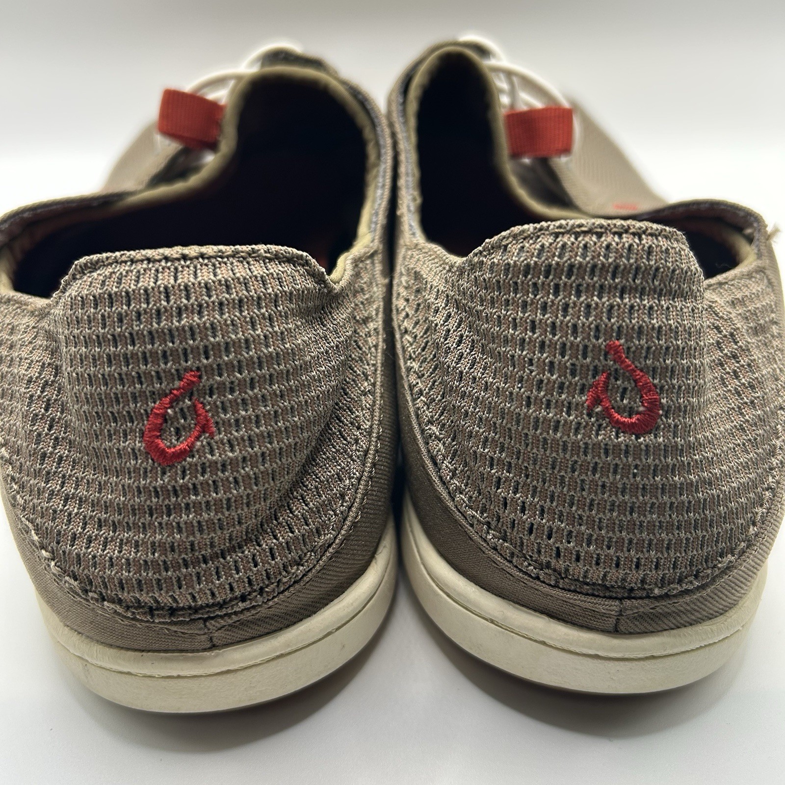 The OluKai Nohea Moku Men’s Boat Shoes in Brown are a stylish and versatile option for casual, slip-on wear. Featuring a round toe shape and a pull-on closure, these shoes offer comfort and breathability with their synthetic outsole and foam insole. The embroidered logo and solid brown color make them a great choice for any season, whether you're heading to the beach, on a casual outing, or working in a comfortable outfit. These slip-resistant and water-resistant shoes are perfect for those who value both style and practicality in their footwear.