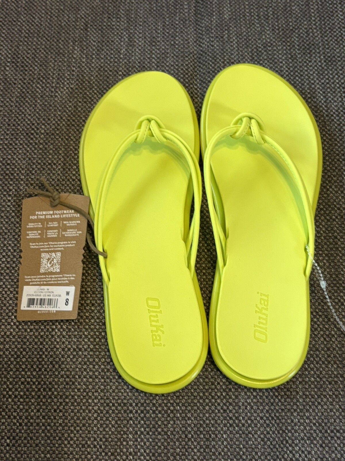 OLUKAI CITRON/CITRON 'AKA KNOTTED STRAPS BEACH/POOL FLIP FLOP SANDALS 8 NWT. Shipped with USPS Ground Advantage.