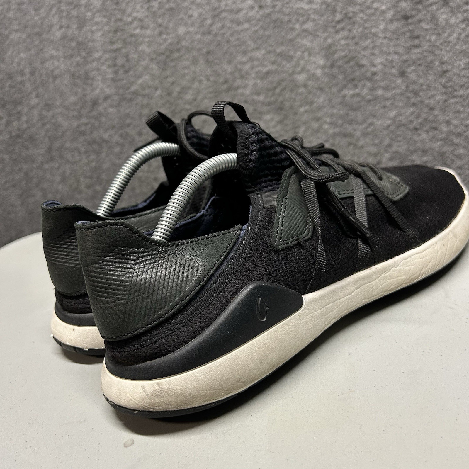 Olukai Mio Li Shoes Mens Size 10.5 Shoes Black Leather Comfort Low Top Sneakers. Condition is Pre-owned. Shipped with USPS Ground Advantage.