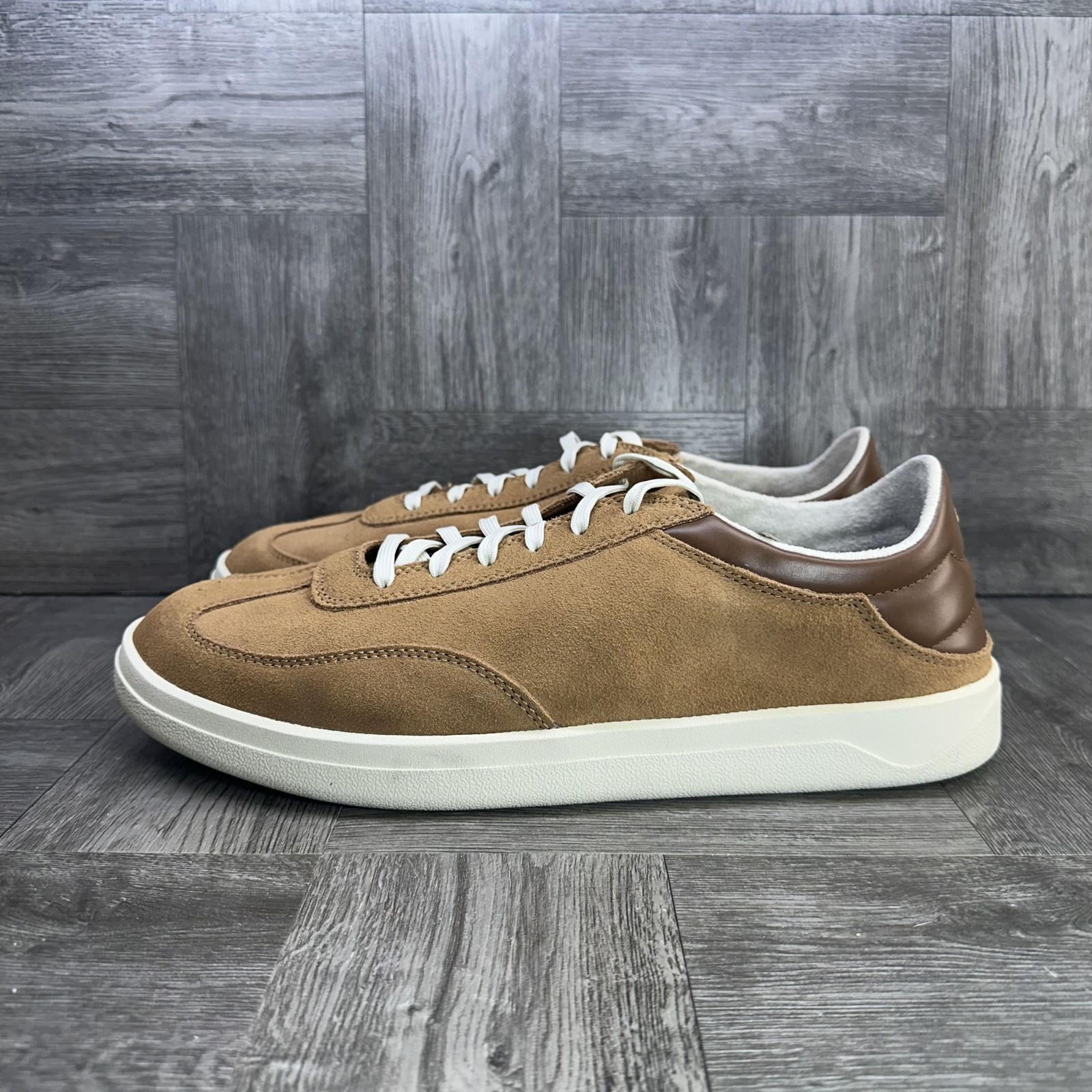 The Olukai Punini Men's size 9.5 Dark Tan Suede Casual Shoes are a stylish and comfortable option for everyday wear. The solid brown color, round toe shape, and lace-up closure make them versatile for both casual and travel occasions. The suede upper and foam insole provide a comfortable feel, while the rubber outsole ensures traction. This sneaker style is perfect for the warmer seasons of summer, fall, and spring, and is a great addition to any man's wardrobe.
