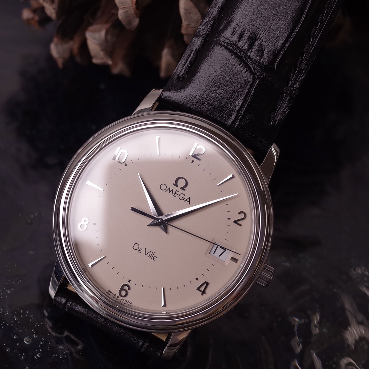 This watch is a stunning blend of classic and modern style! The Omega Devil SS features a sleek ivory dial with crisp details, paired with a comfortable new leather strap. The quartz movement keeps perfect time, and the buckle closure ensures a secure fit. The craftsmanship is outstanding—definitely feels premium. Just be sure to check sizing details before purchasing. A fantastic choice for anyone looking for a sharp, reliable timepiece with Japanese quality. Highly recommended!
