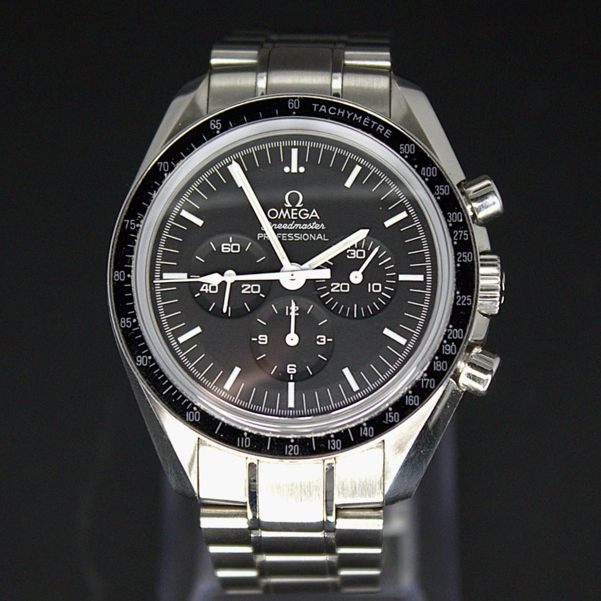 Up for sale is the legendary Omega Speedmaster Professional Moonwatch , reference 311.30.42.30.01.006 , in very good pre-owned condition . This model features a 42mm stainless steel case , black dial with white chronograph subdials , and a Hesalite crystal —true to the original Moonwatch worn during NASA missions. It’s powered by the Omega Caliber 1861 manual-wind movement , the same robust and historically significant movement used in space. This version also includes a sapphire caseback for a clear view of the movement. Includes box and papers . Note: We photograph our watches using a strong macro lens to show full detail. Any visible dust or particles in the images should not be mistaken for scratches or damage. What's Included: ✔️ Omega Speedmaster Professional 311.30.42.30.01.006 Watch ✔️ Box and Papers Key Features: Reference: 311.30.42.30.01.006 Model: Speedmaster Professional Moonwatch Case Size: 42mm Case Material: Stainless Steel Crystal: Hesalite (front), Sapphire (caseback) Dial: Black with White Subdials Movement: Manual Wind (Omega Caliber 1861) Bracelet: Stainless Steel Water Resistance: 50m Why Buy from Us? ✅ 100% Positive Feedback — Buy with confidence from a trusted seller ✅ Authenticity Guaranteed — All watches are verified and guaranteed authentic ✅ Fast & Secure Shipping — Fully insured and carefully packaged ✅ Excellent Customer Service — Responsive support before and after your purchase ✅ 30-Day Returns — Hassle-free returns with full money back if not satisfied