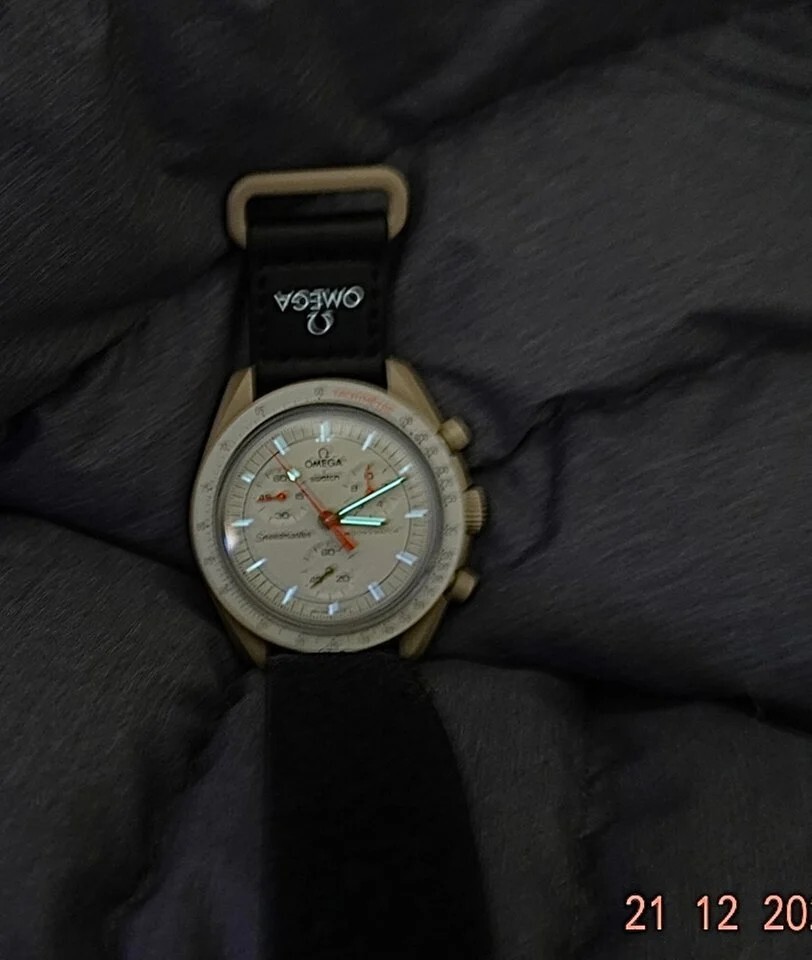Swatch Moonswatch "Mission To Jupiter" Swatch x Omega Watch with original box and original papers serial # SO33C100 Luminous hands, Luminous indices