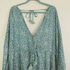 Omika Dress Womens Medium Blue Floral Maxi Riviera Tabina Seaglass Side Slit Adjustable Tie Waist Resort Boho. Dress is in new without original tags, the side tag still has the bag with extra buttons attached as pictured, no stains, tears, or signs of wear noted, please review all photos. Fit is oversized, please see photos for measurements to ensure best fit. If we missed something, don't worry, we offer free returns. Just indicate, "just didn't like it," for any reason, and we'll pay for the return. Thanks for visiting!