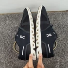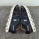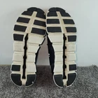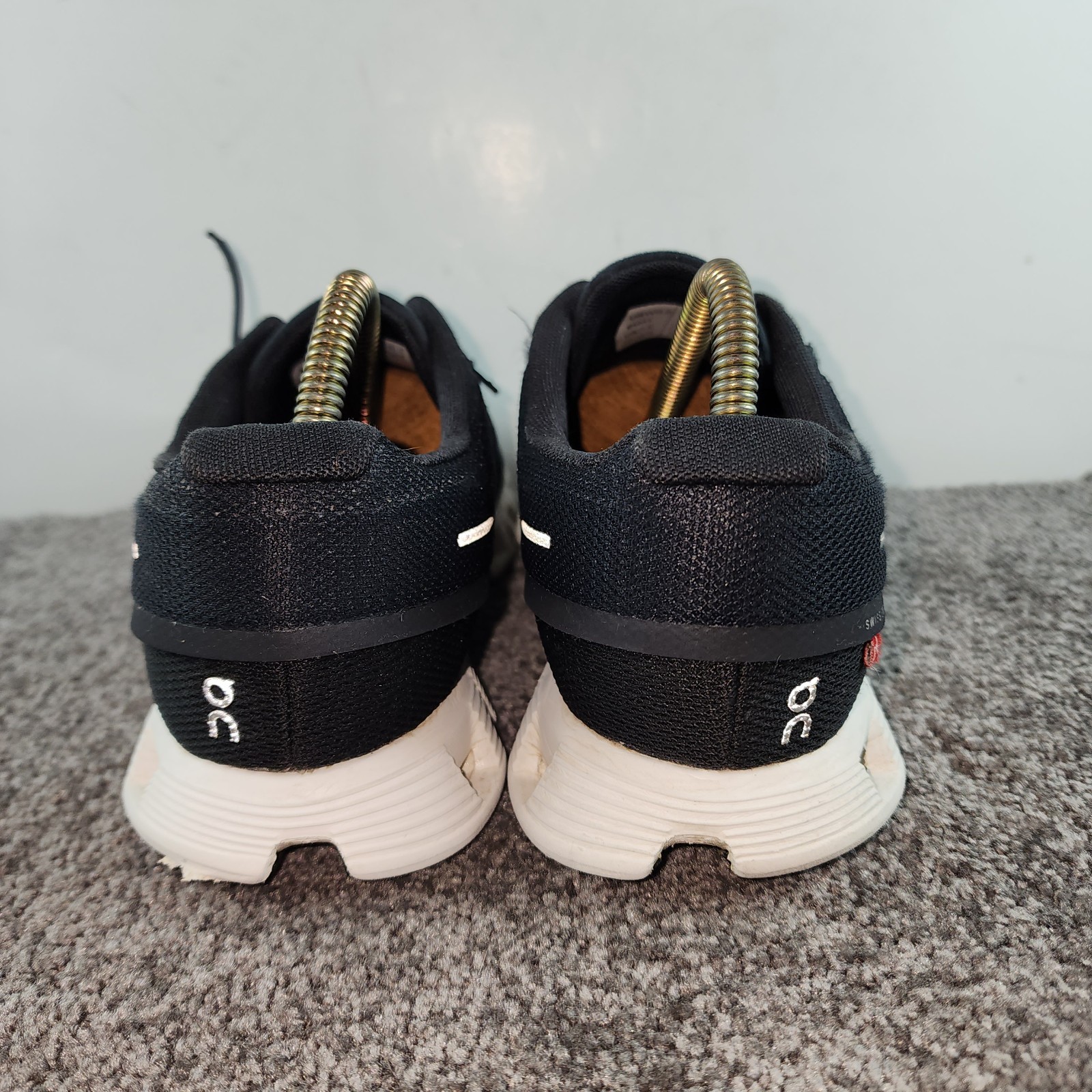 The On Cloud Women's Black & White Light Walking/Running Athletic Shoes in US Size 9.5 are stylish and functional athletic shoes designed for active women. The slip-on style features a striped pattern with silver and blue accents, perfect for casual, activewear, or workwear occasions. Made with breathable fabric lining and cushioned foam insole, these sneakers provide comfort and support for gym training, walking, or running. The patent leather upper material and rubber outsole ensure durability and traction, making them suitable for year-round wear in all seasons. Made in Vietnam in 2022, these On Cloud shoes combine a colorful theme with a sleek sneaker style.