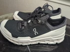 The On Running Women's Cloudultra sneakers are a stylish and comfortable choice for female athletes. With a low top design and sleek black color, these athletic shoes offer a modern touch to workouts. The On Cloudultra model, released in 2022, features a combination of black and white accents, making it a versatile option for various athletic activities. Perfect for running or everyday wear, these shoes are a great addition to any woman's athletic footwear collection. Original box unavailable