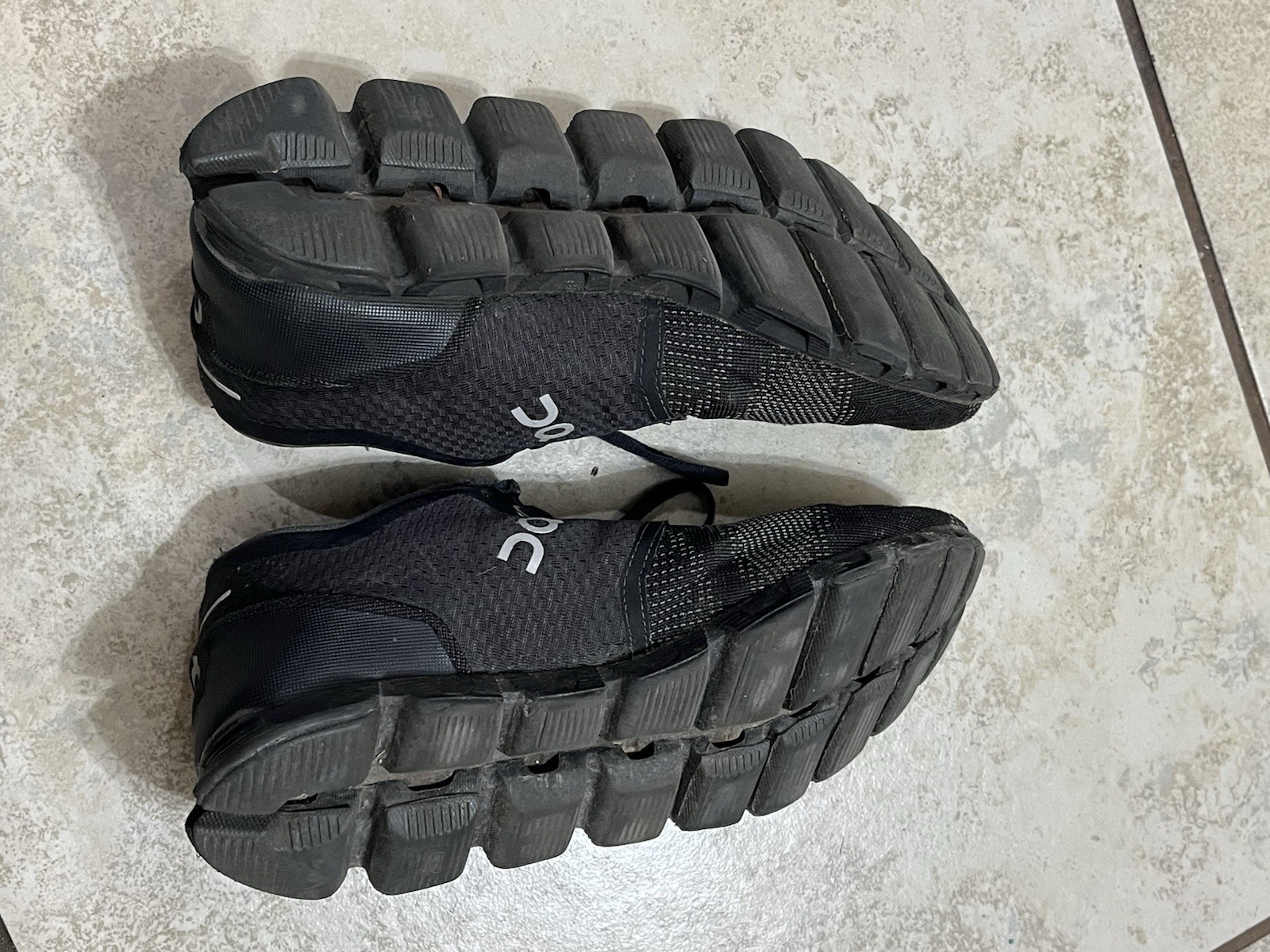 OnClouds Men's Cloud-Based Sneakers Women’s Size 7.5 Black Some wear and tear as shown in photos but overall in great condition!! Great price for condition