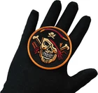 3x3 inch. Embroidered Patch with Plastic Iron on Backing. Patch can be sewn on to Leather Vests, Jackets or Chaps. Patch can also be ironed on to Denim Shirts, Hats or Bags. Iron on Patch at 280 Degrees Fahrenheit for 30 Seconds. Ironing on Application is a semi permanent way of attaching patches. Sew on the Patch for Permanent application. Do not iron on patches to Leather or Nylon Materials.