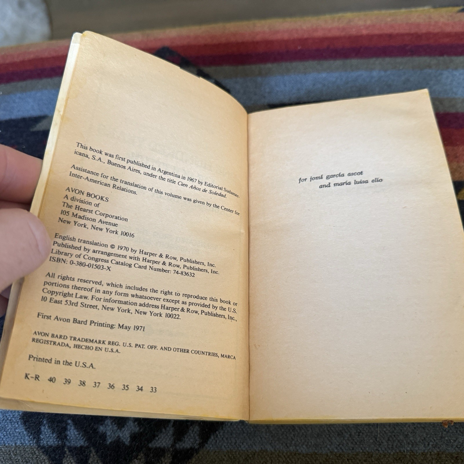 The product is a vintage paperback edition of "One Hundred Years of Solitude" by Gabriel Garcia Marquez, published in 1971. This classic novel is written in English and is a timeless piece of literature that explores themes of family, history, and Latin American culture. The vintage paperback format adds a unique charm to this edition, making it a valuable addition to any book collection for fans of the author and the novel.