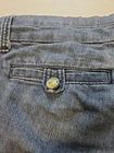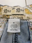 Elevate your summer wardrobe with these stylish one one jean shorts. The whip stitch detailing and floral buttons add a touch of Hawaii and American style to your look. These shorts are perfect for travel and casual occasions, and the stretchy polyester, spandex, and cotton material ensures a comfortable fit. Machine washable for easy care, these denim shorts come in a size 14 and have a Bermuda style. The blue color and stitch accents make them a chic addition to any outfit. Whether you're celebrating a birthday or just lounging around, these shorts are a must-have for any fashion-forward woman. Shorts are in great shape. From a pet and smoke free home.