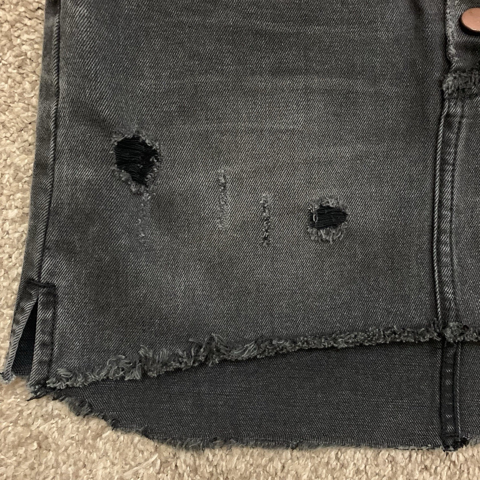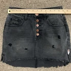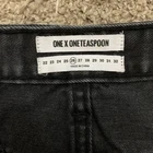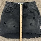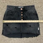 One X One Teaspoon Mini Skirt Womens 26 Black Washed Denim Distressed Button Fly Cute mini skirt in a black faded washed denim. Distressed with frayed high low hem. Button fly closure. TAG SIZE Women's 26 MEASURES APPROX. LAYING FLAT: 13" across the waist 17" across the hips 12" length (front) 15" length (back) CONDITION Excellent preowned condition. *Please be sure to check the measurements in the photos, as preowned clothes may change shape & size after washing. *Please don't hesitate to ask if you have any questions! *SHIPPING Ships out the day of or day after paid purchase unless it is the Weekend or a Holiday. If order is placed on a Weekend or Holiday, your order will be shipped the very next business day. THANK YOU