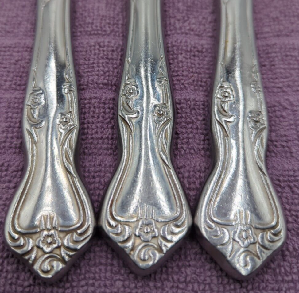 Oneida Azalea Set of 3 Dinner Knives Stainless Flatware Replacements. Normal pre-owned condition. Please see the photos for a more complete description of the condition. All of my items are carefully packed for shipping, no matter their value - $5 items are wrapped with the same care as a $200 item. My goal is to have your purchase arrive safely. Large, heavy and fragile items are harder to use combined shipping with but just ask if you would like to purchase more than one item and I am more than happy to do so if feasible. Measurements are approximate or as close as I can get. Also, the color you see many not be the exact color depending on your computer or phone settings. Unpaid items will result in the buyer being blocked from further purchases. Please remit payment right away so we can get your item shipped out quickly.