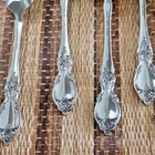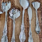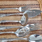 • Includes 8 pieces: forks, spoons, and more • Ornate floral handle design • Stilver-plated finish for a polished look • Ideal for serving or display purposes • Easy to clean and maintain Set includes: 2 forks (8"), 2 serving spoons (8.5"), 1 pie server (9"), 2 slotted spoons (8.5"), 1 ladle (7.5"), 1 butter knife (6.5"), 1 sugar spoon (6"). Please review all photos for condition as part of the description.