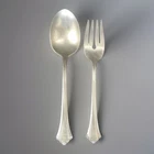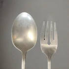 Replacement tablespoon and salad fork in the “Anticipation” pattern for Oneida Deluxe flatware line. Please see photos for conditional details and measurements. Please note the fork’s chipped tine and scratches. These are in preowned condition with visible wear.