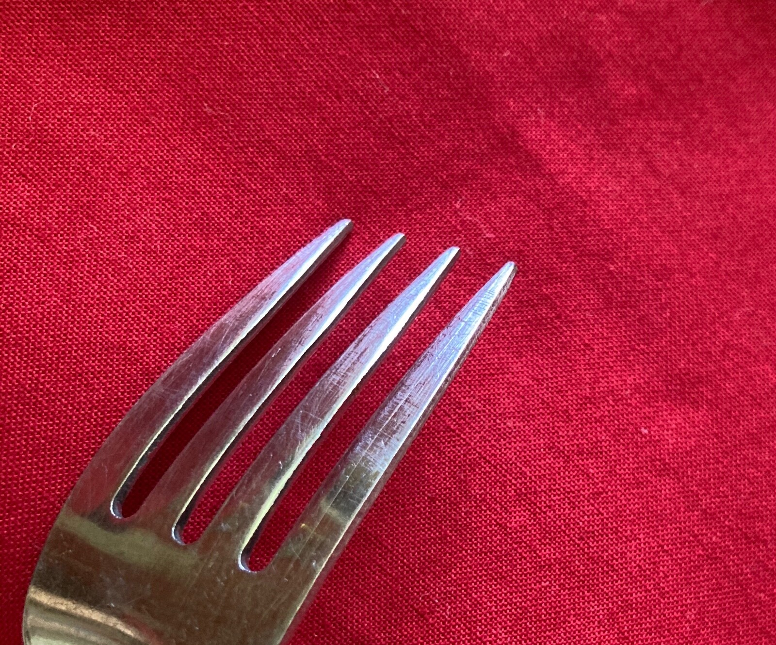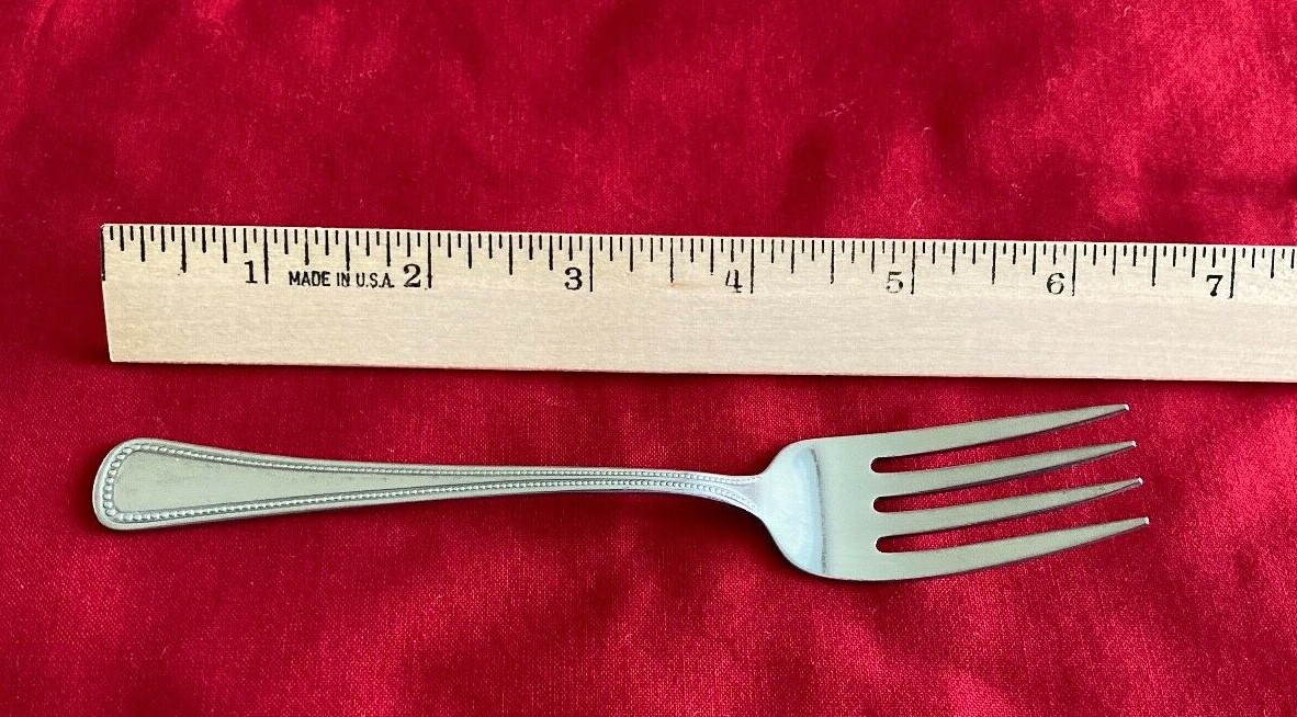 Manufacturer: Oneidacraft Pattern: Zeus Type: Stainless Steel Piece: Salad Fork Length: 6" Add'l wear on back of tines - see pic.