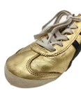 Love these Onitsuka Tigers! The gold color is stylish and unique, perfect for adding a pop to any outfit. Even though they're pre-owned, they're in great condition—super comfortable with just the right amount of wear. The fit is true to size, and shipping was fast with tracking. Seller was responsive and helpful. Definitely recommend for a cool, retro sneaker vibe without breaking the bank!