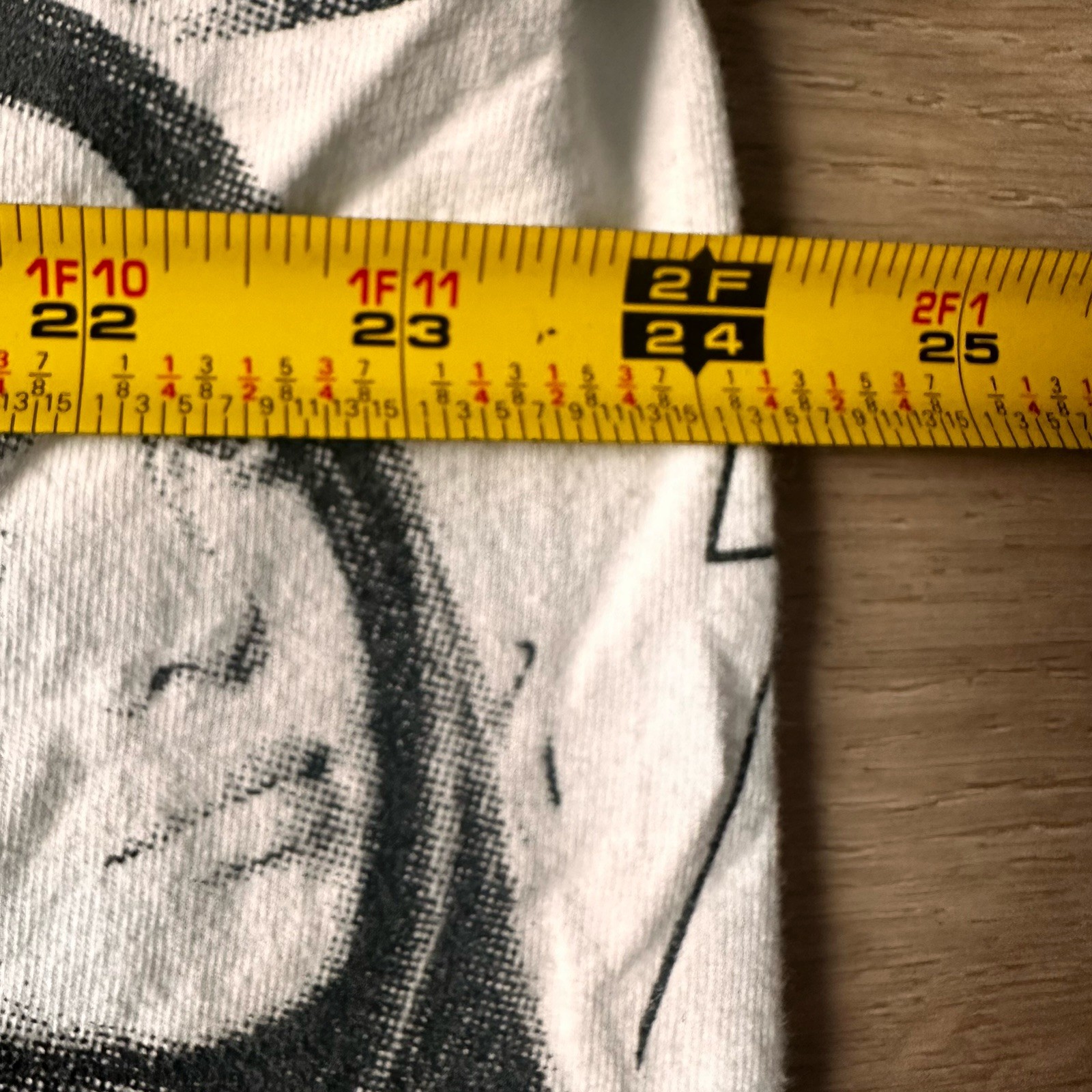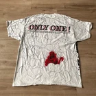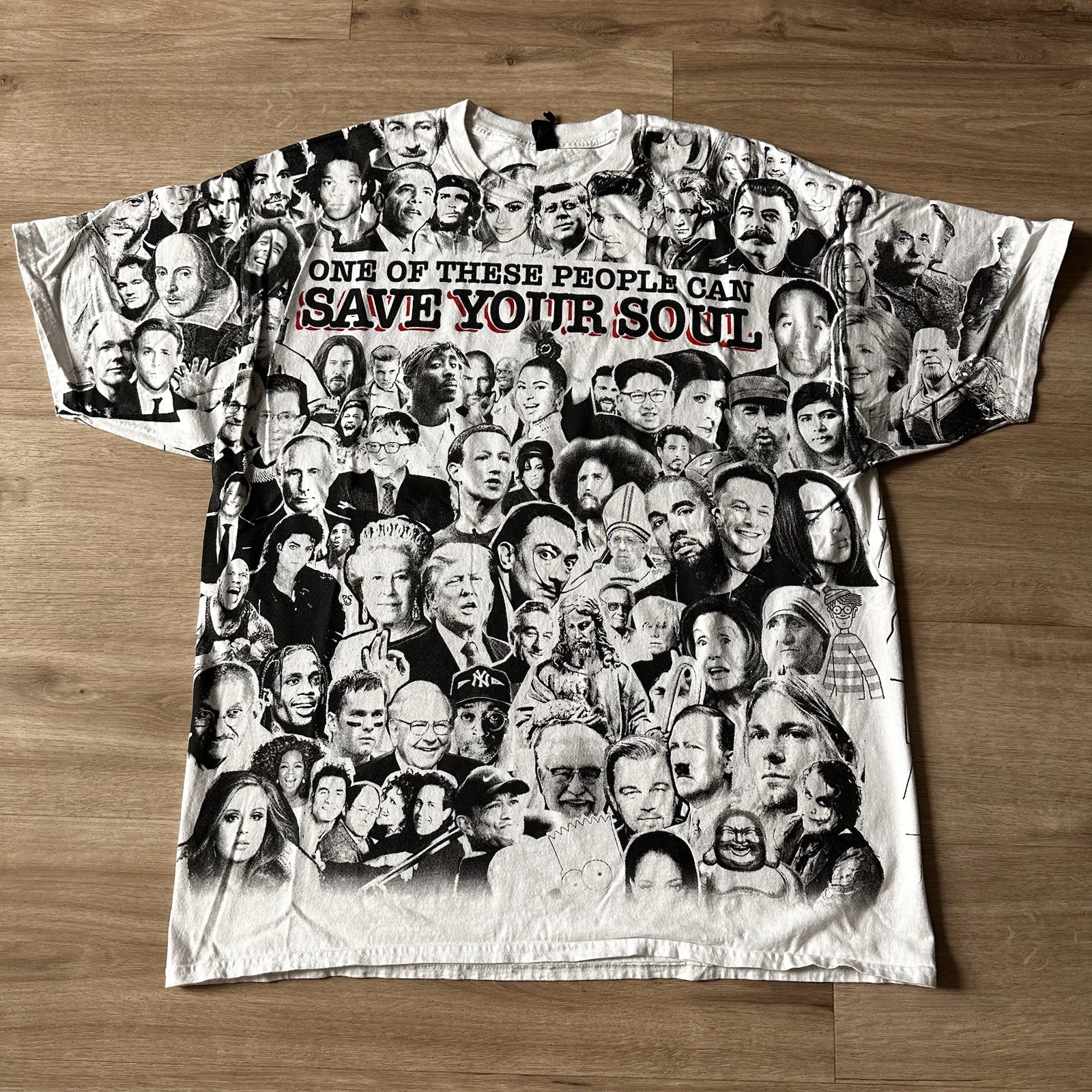The "Only One Of These People Can Save Your Soul Jesus Shirt" in size XXL features a graphic print pattern with a crew neck and short sleeves. Made of cotton knit material, this vintage shirt from the 90s showcases a mix of punk, Jesus, and hip hop themes. It is a double-sided, preshrunk tee with a regular fit, perfect for all seasons and suitable for both men and women. The white color and XL size make it a bold statement piece for those looking to express their unique style with a touch of grunge and faith-inspired messaging. Re make of the famous 90’s shirt, very rare to come by made in 2020 .
