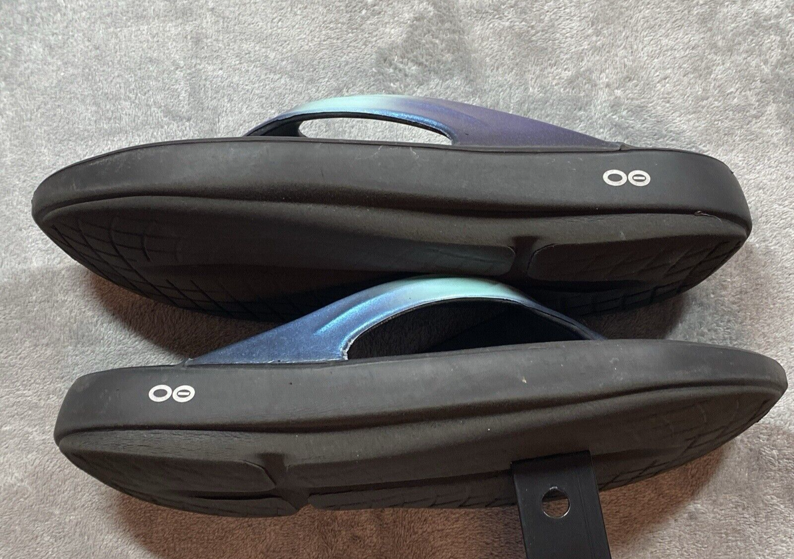 Oofos Oolala Luxe Recovery Flip Flops Womens SZ 10 Black Atlantis Thong Sandals Fair to good pre-owned condition. All clothing is subject to stretch or shrink from use and cleaning by prior owners. See photos for the actual item available. Feel free to contact me with any questions. Elevate your summer footwear collection with these Oofos Oolala Luxe Recovery Flip Flop Thong Sandals in Black and Blue. These stylish sandals feature a ombre pattern, slip-on closure, and arch support for maximum comfort. The rubber upper material provides durability, making them perfect for outdoor activities or travel. With a standard shoe width and breathable design, these sandals are perfect for the summer, fall, or spring seasons. The Oofos Luxe Sandal product line offers a cushioned and lightweight feel, making them ideal for school, beach, hippie, bohemian, college, or casual occasions. The sandals are available in women's size 10. Shop our store with confidence as we offer 30-day returns on all purchases. Additionally you can save money by making multiple purchases to take advantage of our discount shipping policy. You will pay the highest shipping cost for a single item in your cart and $3 for each additional item.