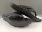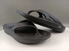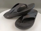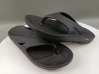The Oofos Sandals Flip Flop in Black are a unisex slip-on style designed for comfort and recovery. Featuring a low heel height and cushioned insole, these sandals are perfect for travel and casual occasions. Made with a lightweight and breathable synthetic upper and lining, they are ideal for wearing in all seasons. The rubber outsole provides durability and traction, while the solid color pattern and standard shoe width ensure a versatile and stylish look. Perfect for men's size 11 and women's size 13, these Oofos sandals are a great addition to anyone's footwear collection.