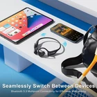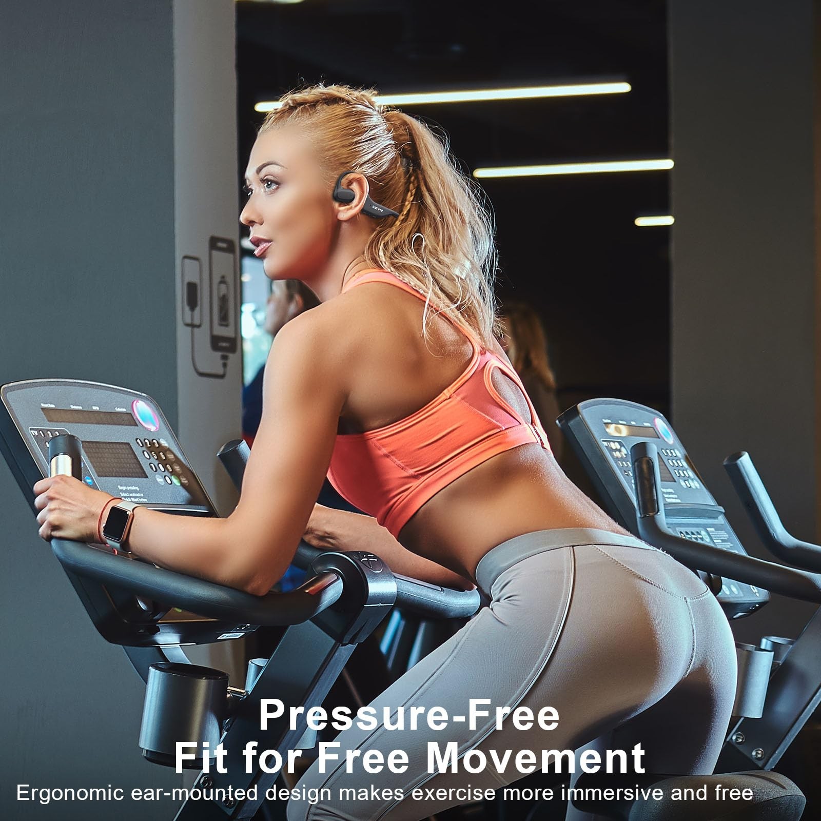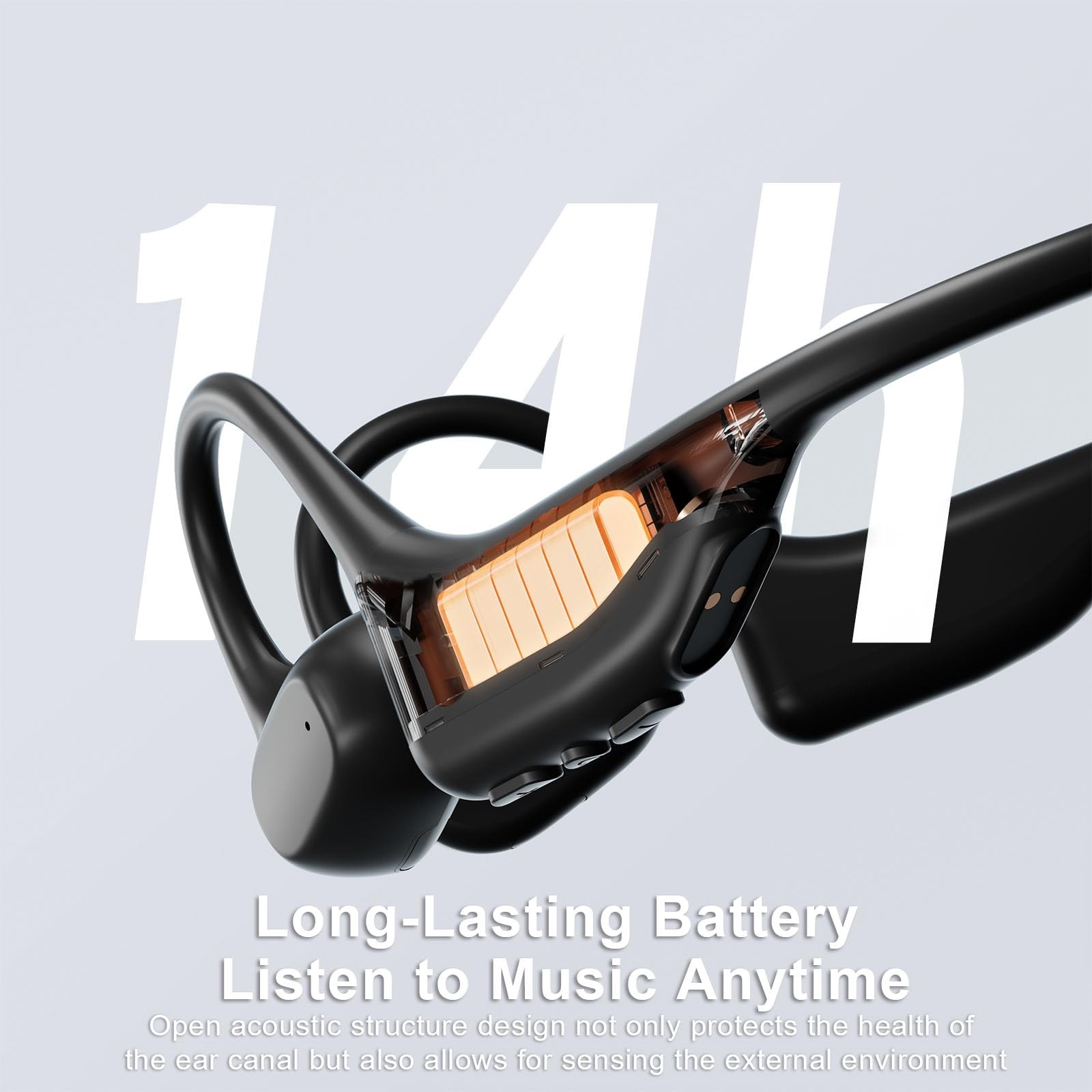 Open Ear Headphones, Bluetooth Sport Headphones for Workout, Running, Sports, Cycling, Hiking, Gym, Calls, 14 Hours Playtime Open-Ear Design: Say goodbye to the discomfort and pressure of in-ear headphones, open ear headphones let your ears breathe freely. Even if you sweat for a long time, your ears will stay cool and healthy. Whether you are running or cycling, you can hear the world around you while enjoying your music. Even the sound of passing vehicles or the sound of conversations can keep you alert. Bluetooth headsets are perfect for an active lifestyle, seamlessly integrating music with the world Lightweight Fit, All-Day Comfort: Thanks to their ultra-light construction and soft silicone frame, running headphones make long hours of listening effortless. The flexible ergonomic design ensures a comfortable, gentle fit, eliminating the pressure of traditional in-ear headphones. Whether you're doing an intense gym session or zipping around on your skateboard, the open ear headphones stay securely in place for all-day comfort and a stable, pressure-free audio experience HD Sound Quality, Every Moment: The open ear headphones are equipped with 15mm speaker drivers to ensure you enjoy every beat, whether you're working out at the gym or taking a walk in the park. The precise sound chamber design of workout headphones delivers clear, full sound directly to your ears, providing a natural listening experience. With rich bass and crisp highs, the high-performance neodymium magnet dynamic unit reveals every musical detail and enjoy pure listening at all times Super Battery Life: Bluetooth headset feature a powerful low-power chip and large-capacity battery, providing up to 14 hours of playtime on a single charge, far exceeding the 8 hours of most products on the market. Whether you are on a busy workday or enjoying a long workout, there is no need to charge frequently. Bluetooth headphones not only provides superior sound quality but also has excellent energy efficiency, ensuring you get a longer-lasting, seamless experience all day long Bluetooth 5.3 Multi-point connection: With cutting-edge Bluetooth 5.3 technology, Open Ear headphones provide faster and more stable connections. Multipoint connectivity lets you connect to two devices at the same time, so you can switch between your phone and laptop effortlessly. Whether you're playing music or taking a call, you'll experience seamless switching. Perfect for your busy lifestyle, the open ear headphones offer reliable performance and ultimate convenience