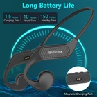 [Upgraded Open Ear Headphone] The upgraded Bluetooth 5.3 chip, with its powerful signal transmission and fast, stable, ensures ultra-fast and virtually unbreakable seamless wireless connectivity up to 33 feet (10 meters). It supports most of the devices with Bluetooth in the market, compatible with Phones/PC/Laptop/Tablet/Nintendo Switch etc. You can easily switch between music mode and game mode, and enjoy 70ms low latency when playing games! (It's not a bone conduction headphones.) [Open-Ear Design Healthy and Safety] The open ear design frees your ears! It protects hearing for people who use headphones for a long time. It keeps your ear canal clean without harming your eardrums. These open-ear headphones are perfect for people who don't want anything covering their ears, and you can be aware of your surroundings to avoid potential dangers and ensure your safety! Perfect for indoor and outdoor use! [Professional IPX6 Waterproof for Sport] Sport headset sweat-proof, dustproof, moisture-proof, is your best fitness partner about running, cycling, hiking, trekking, yoga, etc. In addition, this headset is made of high-strength memory titanium alloy frame, 360° can be bent and stretched at will without deformation, 23g ultra-lightweight design to maximize the fit and comfort, even if you wear it for a long time, you will not feel any pain. [Bluetooth Headset Built-in HD Mic] Bluetooth headset with a built-in microphone and DSP noise reduction for hands-free calls, the wireless headphones with microphone are not only suitable for sports, but also for business people who often work from home and video conferencing. Multi-functional touch easy to operate, play/pause music, voice assistant/siring, music/game mode switch, answer/hang up/reject a call. [Multifunction Touch and Long Battery Life] open ear headphones with multi-function touch for easy operation, turn on/off, play/pause music, activate voice assistant, switch between music/game modes, answer/hang up/reject calls. Wireless Bluetooth headset has a built-in 150mAh rechargeable Li-ion battery, with a quick 1.5 hours charge, you can enjoy 10 hours of uninterrupted music/calls and 200 hours of standby time.