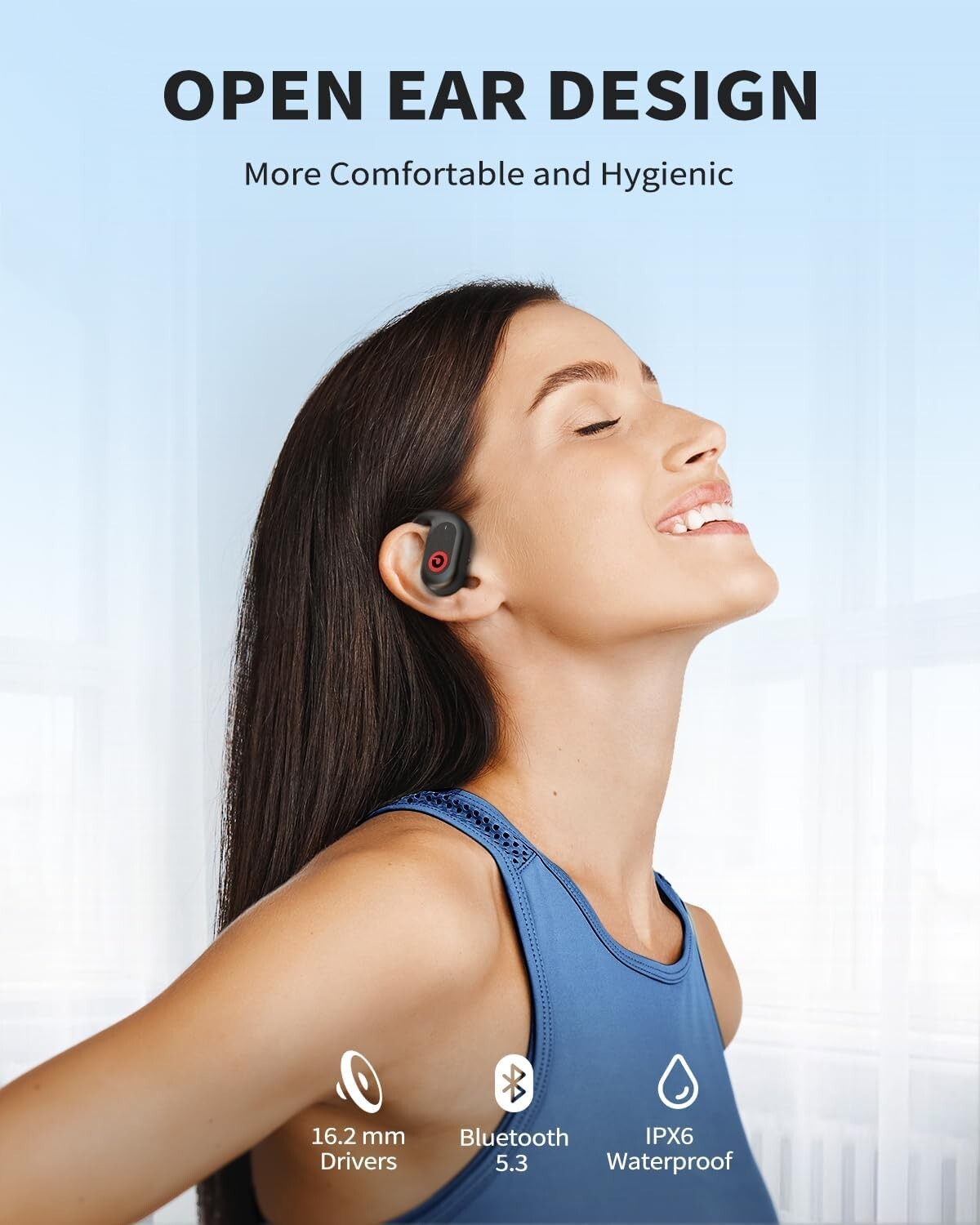 Open Ear Headphones, Bluetooth 5.3 Wireless Earbuds with LED Digital Display 40Hrs Playtime Earbuds, Premium Sound True Wireless Open Ear Earbuds with Earhooks for Running, Sports and Workouts Description 【Open-Ear Design Headphones】Featuring a new generation of true open-ear wireless earbuds design, these headphones gently and securely fit your ears without entering your ear canal, reducing stress and the risk of hearing loss from extended wear. They do not pinch the auricle, block the ear canal, or cause any pain or damage to your hearing. 【Hear Your Surroundings】With open earbuds that rest on your ears without covering them, you can enjoy your music while remaining aware of your surroundings. Whether you're cycling, walking, running, working out, or driving, you can stay safe and alert to changes in your environment. 【Directional Acoustic & Dynamic EQ Gain】The CT12 wireless headphones utilize directional acoustic technology to enhance clear volume output and reduce sound leakage. The EQ effect can be dynamically adjusted based on the earbuds' volume, and the matrix low-frequency compensation function enhances bass and amplifies the low-frequency listening experience, immersing you fully in your music. 【40H Playtime & Digital Display】These open ear headphones provide up to 10 hours of usage on a single full charge. With the charging case, you can enjoy a total playtime of up to 40 hours. The built-in dual LED power display allows you to easily monitor the remaining power of the charging case and the charging status of the earbuds in real-time. 【Stunning Audio Experience】Equipped with 16.2 millimeters vibrating diaphragm speaker drivers, these headphones deliver realistic, crystal-clear sound. With Bluetooth 5.3, the wireless earbuds can be instantly connected once picked up and will automatically reconnect for future use. They also reduce signal interference by 65%, providing a faster and more stable connection. Shipping We only ship items to your eBay registered address for fast and accurate shipment. Thanks We will ship most orders within 1 business day some items ship same day if ordered early enough Delivery >All shipments are shipped via USPS First Class (2-6 business day) from United States. Return Policy All items qualify for returns within 30 days of receipt. Feedback 1.We strive for 5 star positive feedback. We try our best to offer the best service for our buyers. 2.Please message us via eBay before leaving negative feedback.Let's solve the problems together! 3.Please give us a chance to resolve any issues before posting a feedback. 4.Please contact us with any questions or concerns. Thank you for your watch. We look forward to serving you.